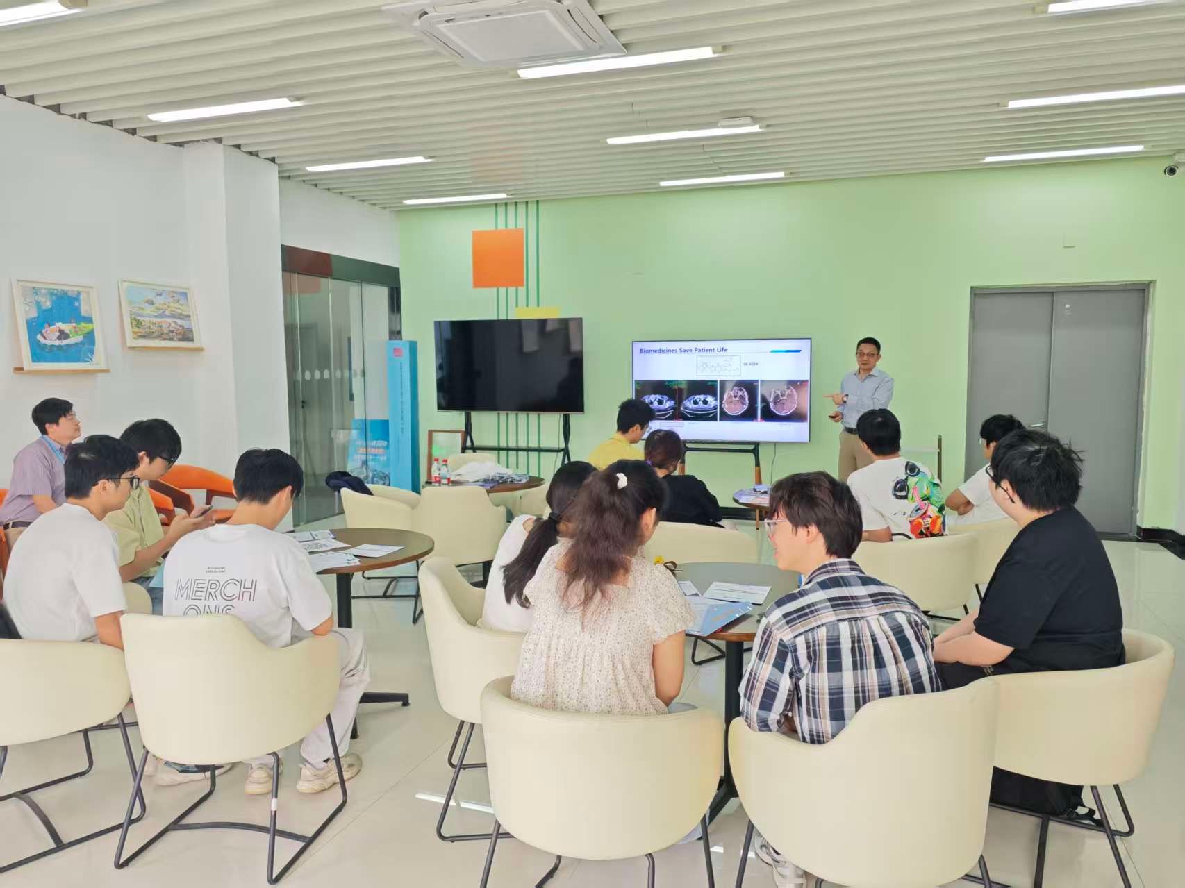 宣讲开始,段茂圣博士介绍美迪西自2004年成立以来,已构建覆盖新药研发全链条的技术平台,拥有80000平方米研发实验室与近2300名员工。他重点围绕PROTAC、小核酸(siRNA)等前沿领域,结合药物研发实例,阐释企业“质量-效率-交付”服务宗旨,帮助同学直观了解行业趋势与成长路径。