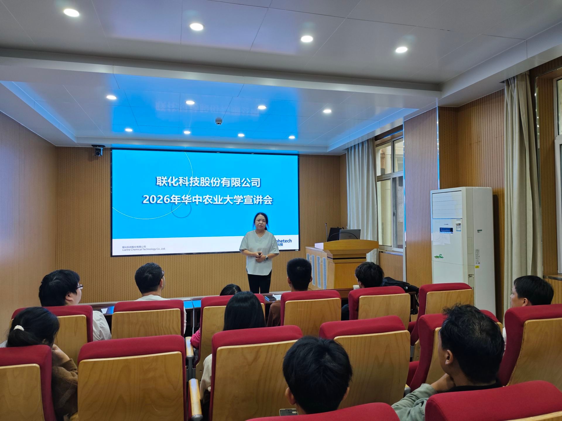 近日,联化科技股份有限公司(以下简称:联化科技)2026届校园招聘宣讲会在必赢242net官网A102报告厅顺利举行。联化科技人力资源总监王琼丽、研发部经理江朋分别从人才发展与技术创新维度展开分享,为同学们搭建起行业面对面交流的桥梁,并在现场进行招聘面试,会议由2022级辅导员程思源主持。