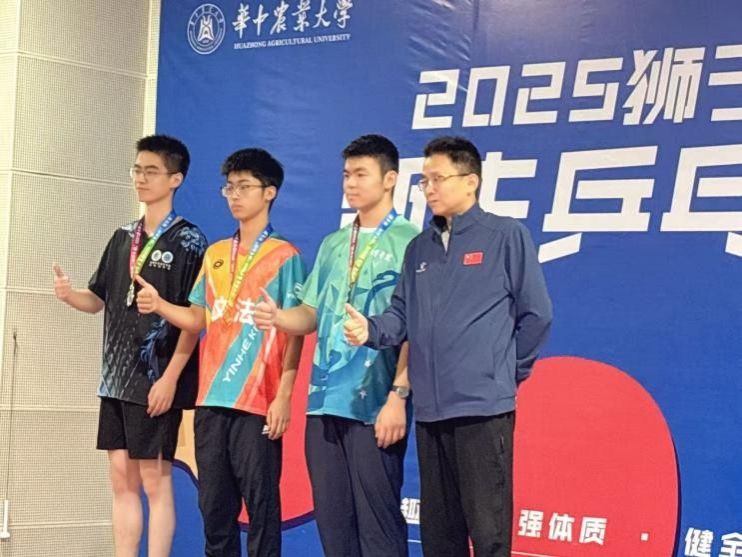 团体赛方面,必赢242net官网男子团体展现出良好的配合意识。队伍由周韦杭、闵俊强、周晟担任主力,研究生王宇尧作为替补全程参与。赛前,王宇尧主动分享经验,协助队友备战;比赛中,他在场边提供支持和提醒。作为主力,周韦杭在单打中多次拿下关键分;闵俊强和周晟在双打中配合默契,表现沉稳。全队从小组赛一路晋级,即使在落后时也未松懈,始终相互鼓励、积极调整。最终,必赢242net官网男团获得乒乓球新生杯第五名,这一成绩离不开每位队员的共同努力。