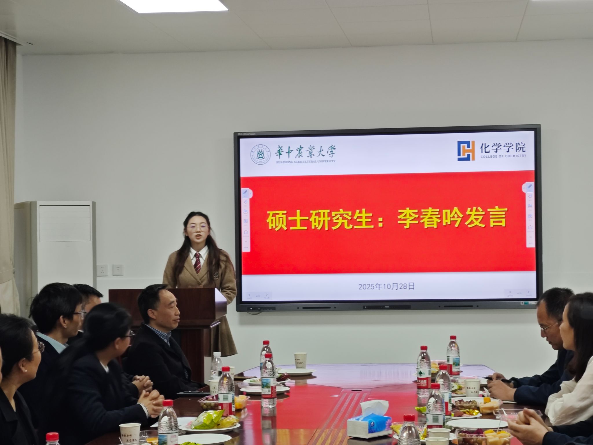 硕士研究生代表李春吟则以 “落其实者思其树,饮其流者怀其源” 这句富有深意的古语开篇,瞬间道出了全体学生对韩教授的深深感恩之情。她动情地表示,每一位学生的成长都离不开韩教授的悉心滋养,“他不仅是我们科研路上的引路人,在我们面对科研难题束手无策时,用专业的指导帮助我们攻克难关,引领我们在科研的道路上不断探索;更是我们毕生追慕的榜样与奋斗的坐标,他严谨的治学态度、高尚的品德修养,都深深影响着我们,激励着我们在未来的人生道路上不断前行。”