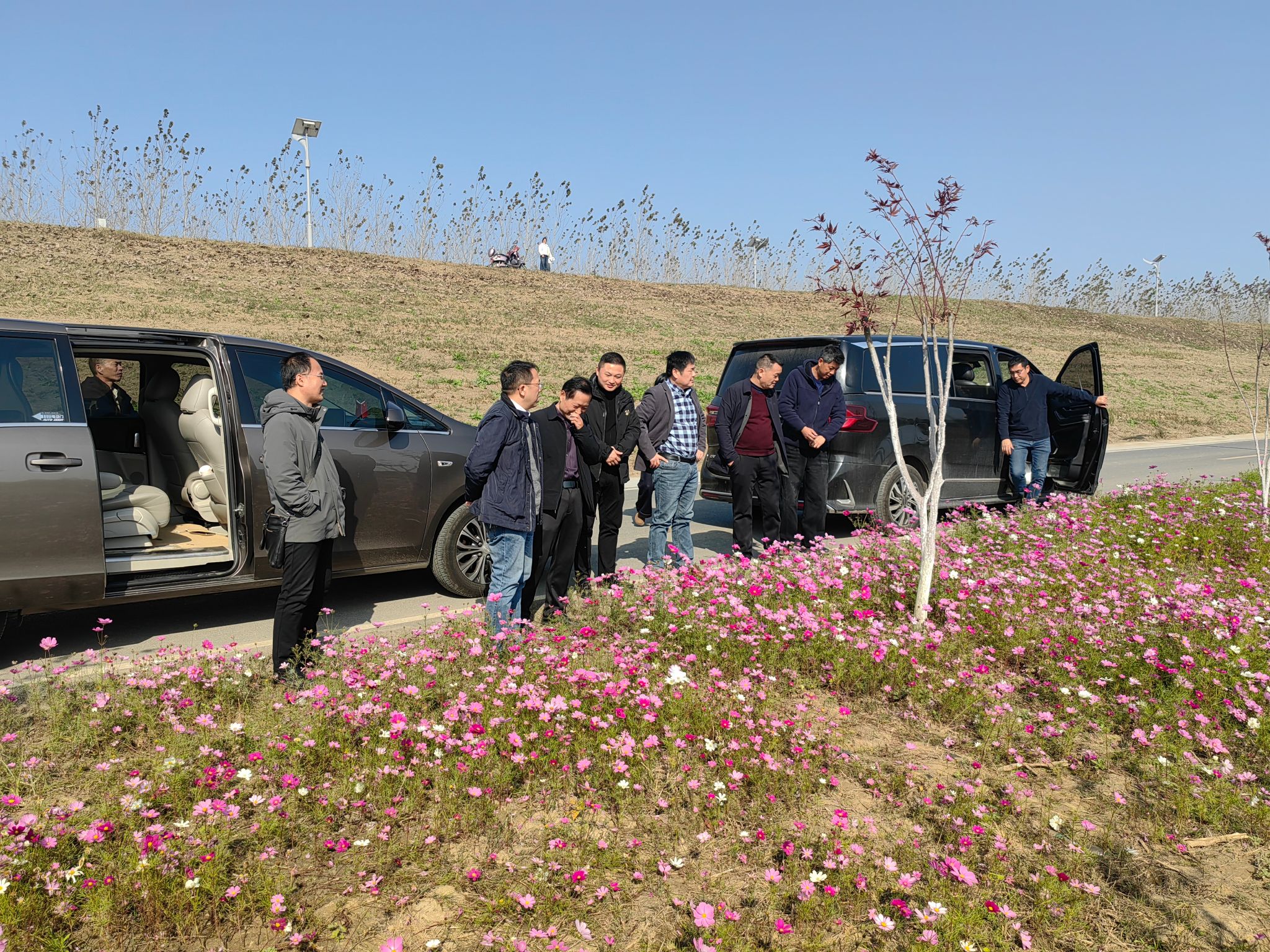 最后,涂俊才一行现场参观了潜江市东荆河河岸景观绿化工程,并提出了具有可操作性的优化建议。